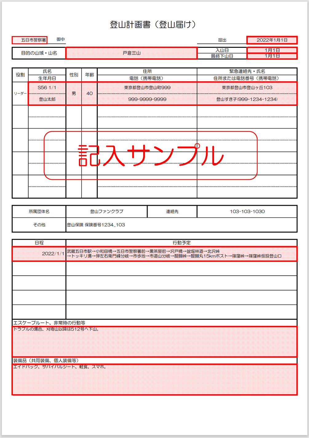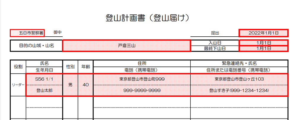 日帰りであれば、その日の朝に上る山の管轄警察署や交番に届け出てもok。